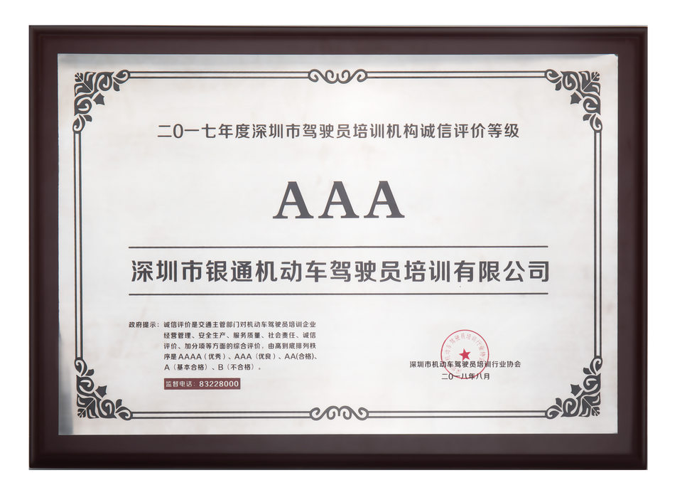 深圳市銀通機動車駕駛培訓有限公司,成立於1982,是深圳市成立最早的駕駛員培訓學校,至今已有42年歷史,是經深圳市交通運輸委員會批准,在深圳市工商管理局註冊成立的正規駕駛員培訓機構,是交管“AAA”質量信譽評價駕校,是華為、比亞迪、深圳技術大學長期合作單位。